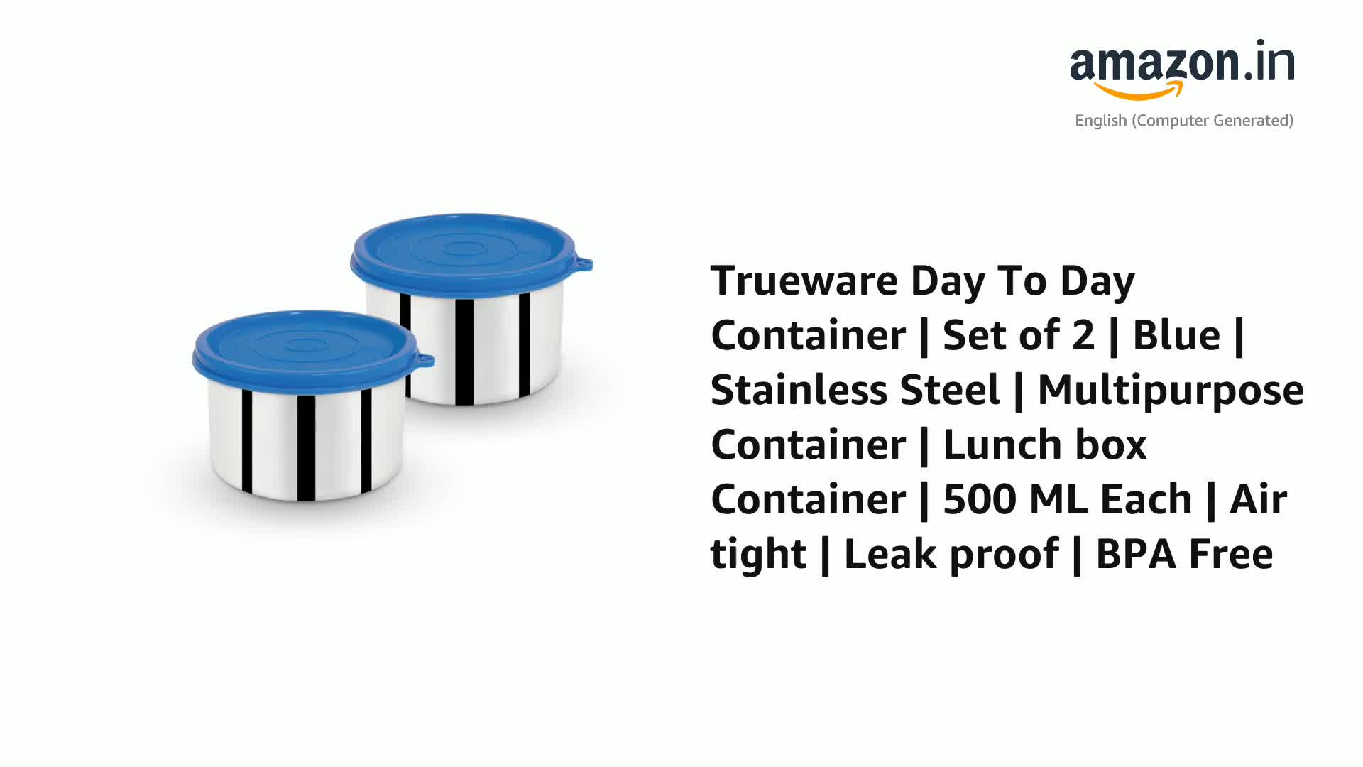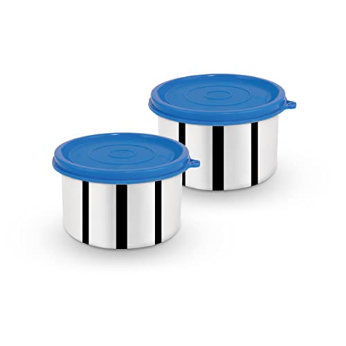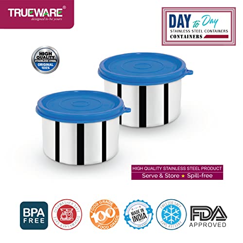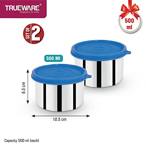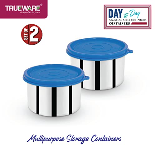 Trueware Day To Day Container | Set of 2 | Blue | Stainless Steel | Multipurpose Container | Lunch box Container | 500 ML Each | Air tight | Leak proof | BPA Free