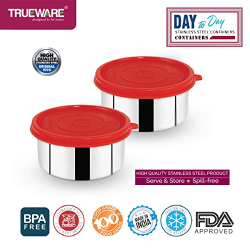 Trueware present high quality stainless steel container set. Its multipurpose container set. These sleek nested mixing bowls are perfect for tossing a salad reheating your dishes preparing delicacies marinating food and yes even mixing up your favorite's cake batter. Feature glazing finish wide pouring rims and attractive plastic lid so they can double storage. The sturdy design can be used to prepare food as well as to store and serve it with help from airtight lids that keep the bowls contents fresh. The lids also make it easy to transport the bowls to picnics and potlucks without spilling along the way made of polypropylene plastic the protective lid snaps right on top of the bowl you don't need to worry about spills all over the table or floor. The best thing about it is that you can reheat food in the steel because it can withstand high temperature. Serve meals is these handy bowls then add the plastic lids to easily store the leftovers. This stainless steel bowl set with plastic lids can be nested together for convenient storage. You will find the stainless steel bowl storage set convenient for storing food in and outside of the refrigerator. Great for packing lunches or taking snacks on the go.
