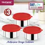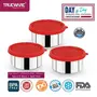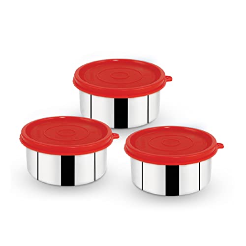 Trueware present high quality stainless steel container set. Its multipurpose container set. These sleek nested mixing bowls are perfect for tossing a salad reheating your dishes preparing delicacies marinating food and yes even mixing up your favorite's cake batter. Feature glazing finish wide pouring rims and attractive plastic lid so they can double storage. The sturdy design can be used to prepare food as well as to store and serve it with help from airtight lids that keep the bowls contents fresh. The lids also make it easy to transport the bowls to picnics and potlucks without spilling along the way made of polypropylene plastic the protective lid snaps right on top of the bowl you don't need to worry about spills all over the table or floor. The best thing about it is that you can reheat food in the steel because it can withstand high temperature. Serve meals is these handy bowls then add the plastic lids to easily store the leftovers. This stainless steel bowl set with plastic lids can be nested together for convenient storage. You will find the stainless steel bowl storage set convenient for storing food in and outside of the refrigerator. Great for packing lunches or taking snacks on the go.