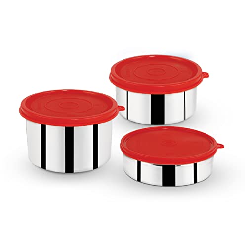 Trueware Day To Day Container | Set of 3 | Red | Stainless Steel | Multipurpose Container | Lunch box Container | 200ML, 300 ML & 500 ML | Air tight | Leak proof | BPA Free