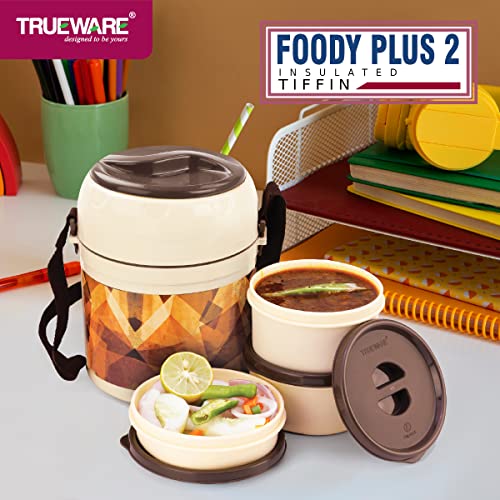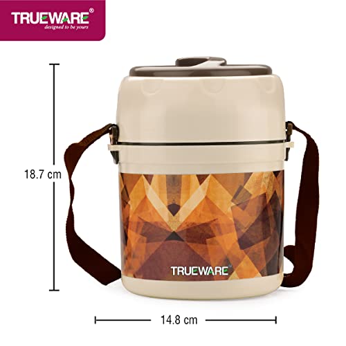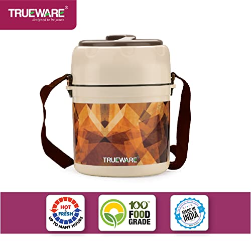 • Trueware Insulated Foody Plus 3 Lunch Box - The Ultimate Leakproof Tiffin for Office School & Home | For Men Women and Kids | Premium Stainless Steel | Microwave Safe | A Must-Have for College Students | Brown