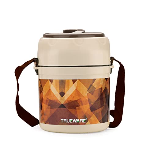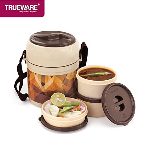 TRUEWARE Foody Plus 3 Lunch Box with3 Container300ml X3 Color- Brown-Experience the ultimate lunchtime convenience with the Trueware Lunch box. Designed to cater to the needs of office-goers students and homemakers this versatile lunch box is perfect for men women and kids alike. Crafted from durable stainless steel the Trueware Lunch box ensures long-lasting performance. Its insulated design keeps your food at the desired temperature whether it's a steaming hot curry or a refreshing chilled salad. No more settling for lukewarm meals or soggy sandwiches! With its spacious compartments and curry container this lunch box provides ample storage for a variety of dishes. Pack your favorite meals snacks and sides while keeping them organized and leakproof. The included juice bottle is an added bonus allowing you to quench your thirst on the go. Worried about reheating your food? Fear not! The Trueware Lunch box is microwave safe making it convenient and hassle-free. Simply pop it into the microwave heat your meal and enjoy piping hot food in an instant. Ideal for students the Trueware Lunch box is a favorite among college-goers. Its modern design and easy-to-carry features make it a stylish and practical choice. Plus it's the perfect companion for long study sessions or on-campus lunch breaks.