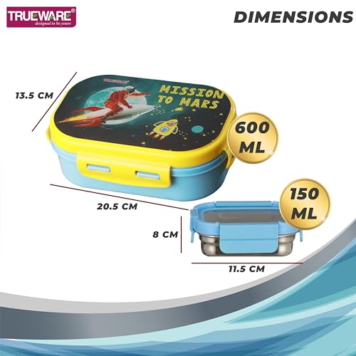 Trueware KOKO Junior Steel Lee Pu Insulated Hot Lunch Box 600ML Big Container and 150 ML Veggie Container | BPA Free | Food Grade | Keep Food hot for Long Hours | Perfect for School