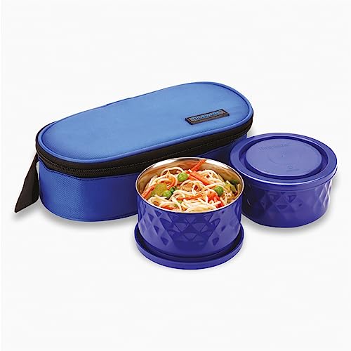 This lunch box is an ideal choice for office going people it is compact and perfect for carrying a wholesome meal. Featuring 2 leak-proof containers so that you can carry a variety of food without the fear of spillage. The cover is soft insulation which keeps food hot and fresh for long hours. It contains two round Stainless Steel containers. It is Soft insulated tiffin which contains jacket and it is an ideal for office or any other outdoor meetings. Comes with a plastic fork and knife which have a special storage slot in the jacket.