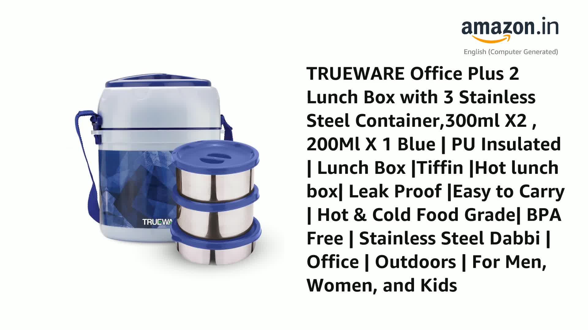 Trueware Lunch Boxes are made of high quality stainless steel . Because of its insulated quality this lunch box keeps food hot for long hours. Trueware lunch boxes are leakproof and easy to carry .Now You can use this lunch box for carring food in office schoolcollege .