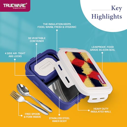 This sleek and compact lunch box from Trueware is the ultimate companion for your daily meals. The vibrant and eye-catching design featuring a striking geometric pattern in bold colours adds a touch of style to your lunchtime routine. Crafted with durable materials this lunch box ensures your food stays fresh and flavourful until you're ready to enjoy it. The included utensils a fork and spoon are neatly tucked away making it convenient to carry and eat on the go. Whether you're packing a delicious homemade meal or grabbing a quick snack this lunch box is the perfect choice for those seeking both functionality and flair. With its compact size it easily fits into your bag or backpack making it an ideal accessory for work school or outdoor adventures. Embrace the fusion of practicality and style with this trendy lunch box from Trueware.