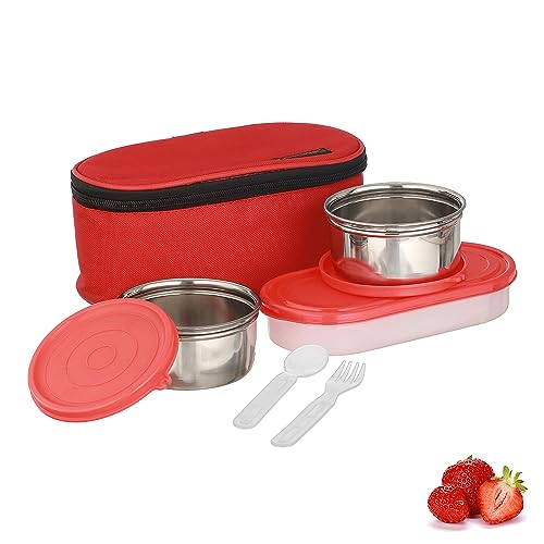 Trueware Tasty Double Decker, 300 X 2, 500 X 1 Container| Red |Stainless Steel | Lunch Box | Tiffin | Leak Proof | Easy to Carry | Food Grade | BPA Free | Office, School & College Lunch Box