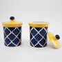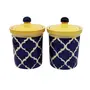 KHURJA POTTERY Hand Painted Ceramic (Blue & Yellow) Multipurpose Jar 750 ml for Kitchen/Dinning Table/ Chatni / Pickle / Spices/ Storage/ Gifts.