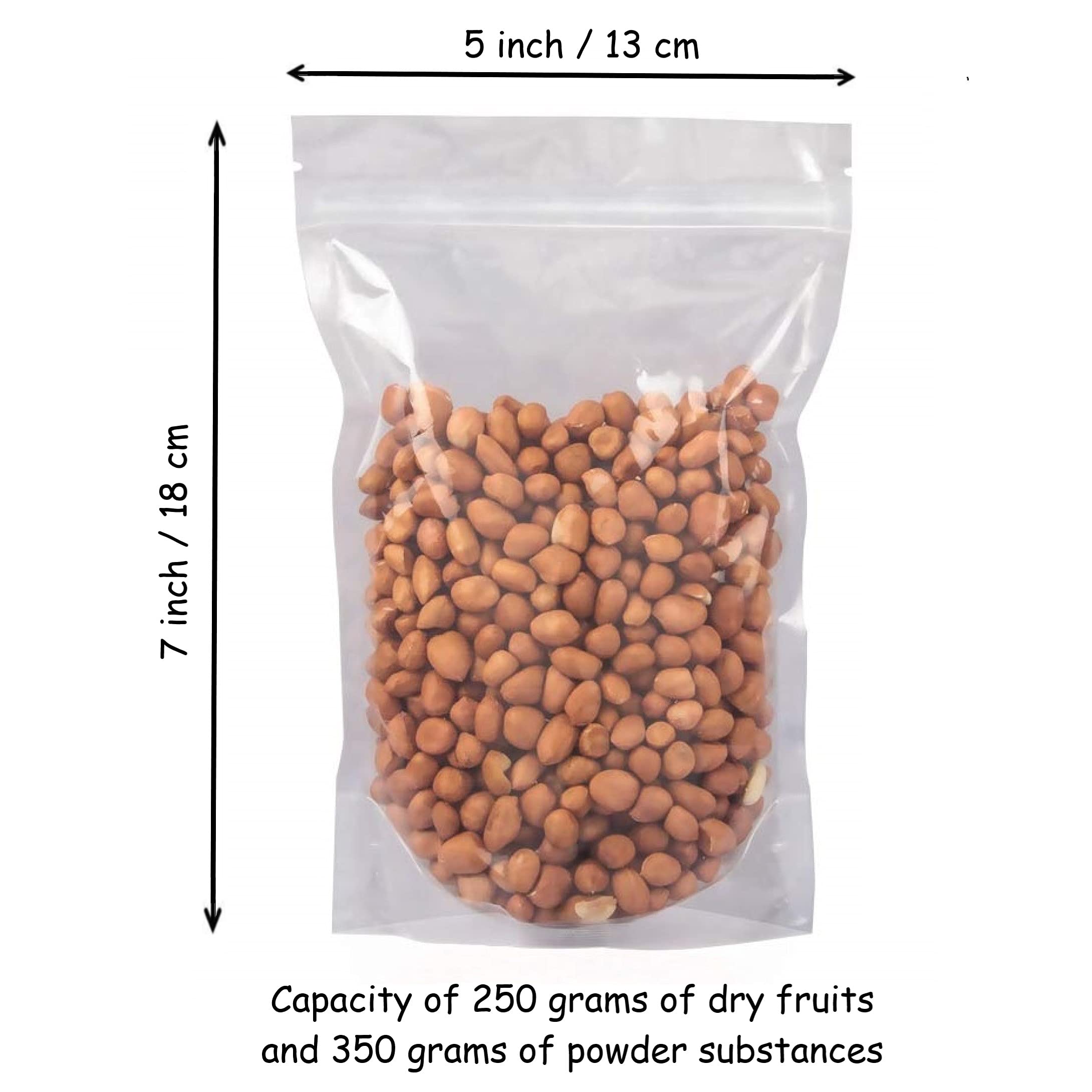 • PREMIUM QUALITY - These Premium Stand-up zipper Pouchare made of high-quality material which increases their strength and transparency. Both sides of this pouch are transparent which comes with a zipper so that it can be reused