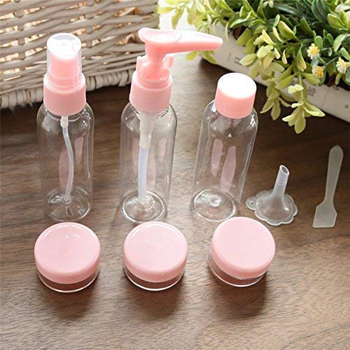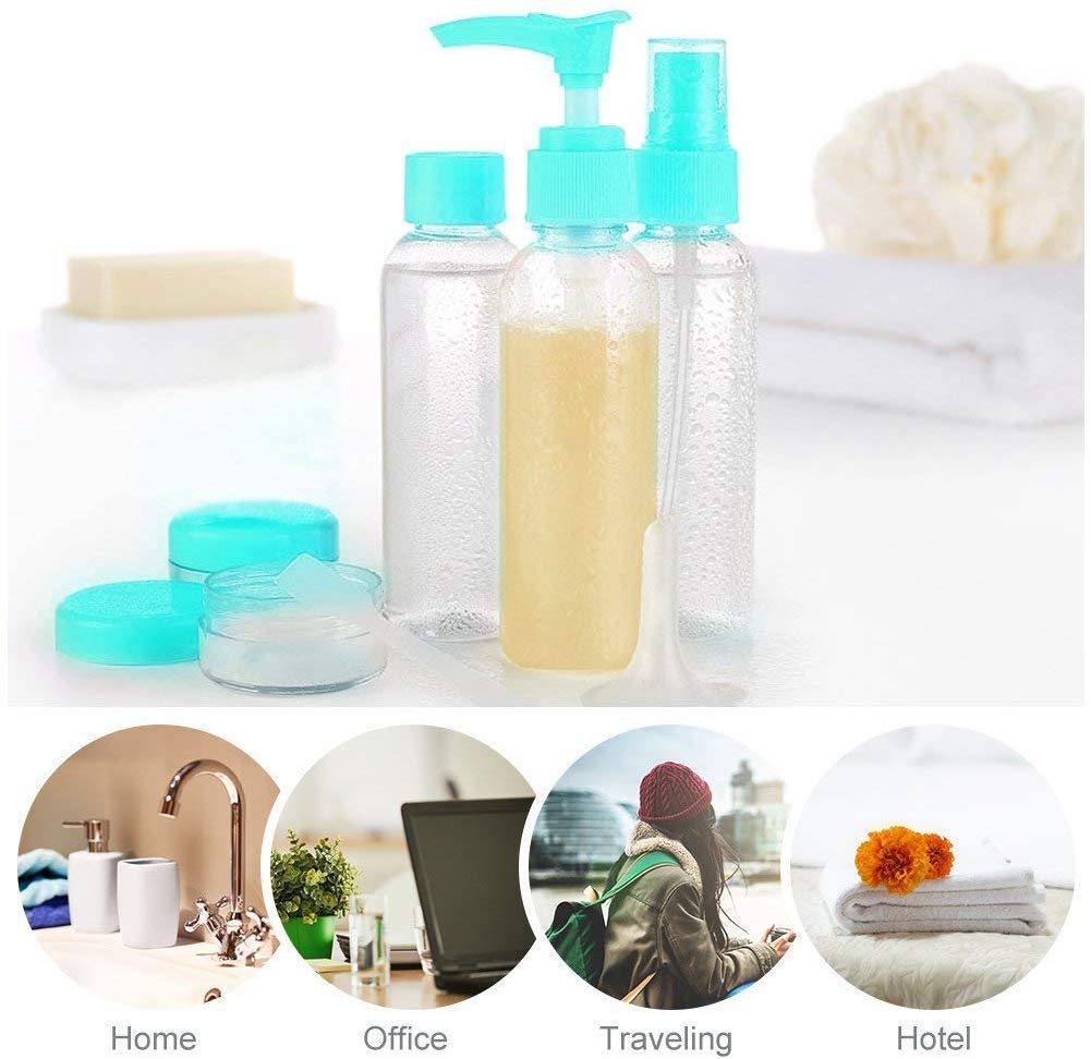 Specification:- Material: Plastic Color: MulticolorSize Map: 50 ml Bottle It's Recyclable BPA-free ReusableProduct description:-This silicone leak proof travel bottles are made from pp plastic. Leak proof with a 3-layer anti-leakage design they are perfect for shampoo conditioner body wash lotion sunscreen or other types of liquids. Ideal for travelling they are approved as carry on bottles in most airlines especially when travelling abroad. These cosmetic travel bottles come in a set of 5- 3 bottles and 2 small containers with a mask stick funnel mini spatula. The large bottle openings make it easy to fill and clean. Stylish design and rugged durability it fits easily into pockets bags or purses.Perfect for a business trip or vacation tourism and everyday carry. The entire set comes in its own transparent pouch. No need to lug around large bottles tubes and cans that contain an excess of lotion liquid gel and cream. Cut down on weight and keep everything organized with this Cosmetic Toiletries Travel Kit containing 3 empty refillable bottles and cream jars.These bottles come very handy as they fit inside your purse or handbags ready to be used when you feel the need.Package Include:- 3 x Cosmetic bottles 3 x Cosmetic small container1 x Funnel1 x spatula 1 x Transparent Bottle Storage Box.