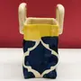 KHURJA POTTERY Handpainted Ceramic Small Cutlery Holder Set of 1 Blue & Yellow