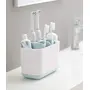 SR large toothbrush caddy is divided into several sections providing organized storage for a range of oral care items including toothbrushes toothpaste tubes and dental floss. It dismantles for easy cleaning and features a shallow compartment for small items a ventilation hole for quick-drying and a non-slip base. Wash and dry by hand.