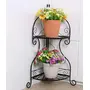 Made by WROUGHT IRON CRAFTS Metal frame keeps this plant shelf durable and able to hold multiple plants at once. A functional and decorative addition to your patio balcony courtyard or office. This plant rack is supported by 2 metal stands which make it stand upright and stable. Features 2 shelves in a step design creating an appealing and unique fashion. Achieve truly seamless welding ensure the stability of the flower holder. Welding junction is neat and mellow point of weld is natural and beautiful. Exquisite craftsmanshipThe Environmental paint coated finish is smooth and thick enough to avoid fading and peeling.