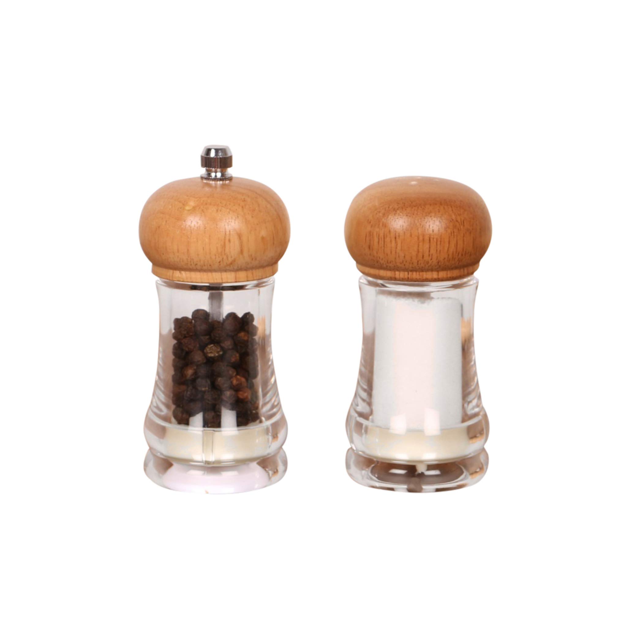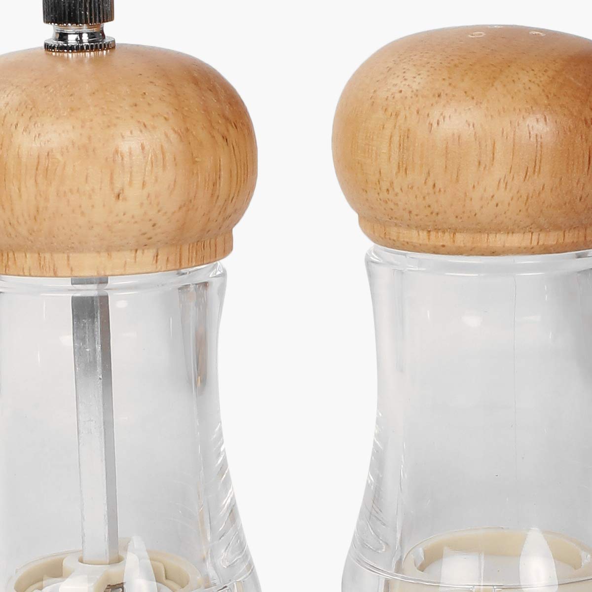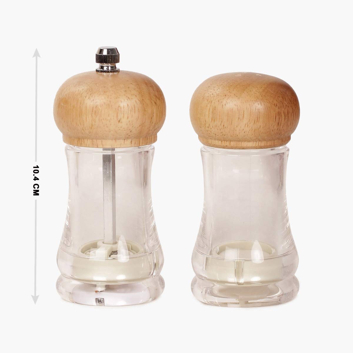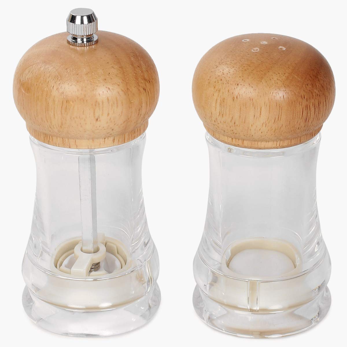 Home Centre Truffels Solid Pepper Mill Shaker - Wood - Pepper Mill and Salt Shaker - Set 10.4 cm - Transparent
