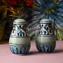 KHURJA POTTERY Hand Painted Large Size Multi Coloured Salt and Pepper Dispenser for Kitchen Dinning Table