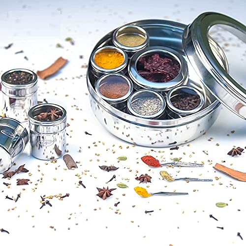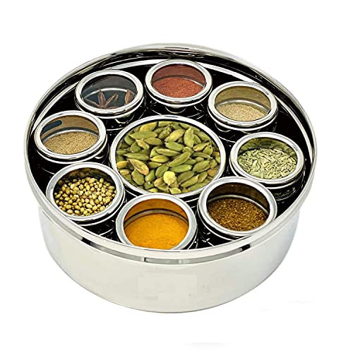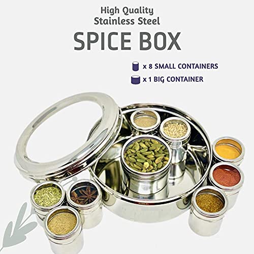 Dynore Stainless Steel See Through Lid 9 in 1 Spice Box/Masala Dabba/Masala Dani For Kitchen