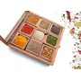 Wooden sheesham spice box for kitchen spices with excellent quality. This comprises of 9 sections that can be removed from box to keep different spices. This comes with a free sheesham wood spoon to make things easy. This beautiful box is specially design for kitchen in order to organize the things easily. This box has great durability of 10yrs minimum. This wooden box organizer is best suitable for keeping spice easily. It comes with a safety lock. Lid is made from glass which has excellent quality and shock proof. Also we have provided a free spoon in order to make things easy. This rectangular spice box 100% handcrafted to a fine detail by expert artisians. It is made of high-quality sheesham wood also called Indian rosewood found in a heart of India and polished with food safe and completely natural . Indian artisans have crafted this beautiful collection of wooden spice boxes to not only make your cooking time more organized and simple but also adding an artifact that has been in use since time immemorial to your kitchen. The ever changing wood veins and tones make each masterpiece unique and inimitable. These simple compact spice boxes -"Masala-dabba" make your smell senses work and feel every spice flavor so refined that you have nothing to do other than just relax in the cooking ritual. With every spice box you will also get handmade burlap pouch and a spoon. Seasoning container set can be used to hold a variety of condiments: salt pepper sugar spice corn starch and knick knacks more.