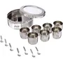 Stainless Steel Special Containers which keeps food items fresh longer. Stainless Steel Masala Box Dabba /Spice Container Box with 2 Spoons - Clear Lid.