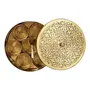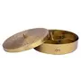 The Advitya Brass Masala Box for Kitchen |Spices Storage Containers| Handmade en Masala container/Spice Box with Embossed Lid 7 Compartments and 1 Spoon (7 Inch Small) Gold
