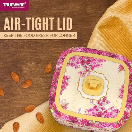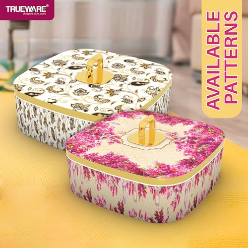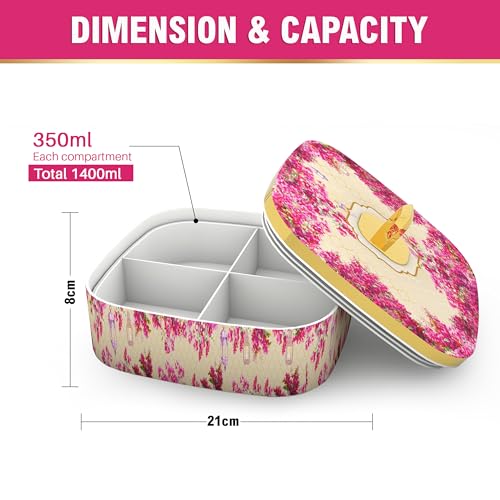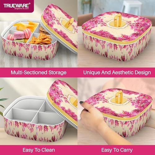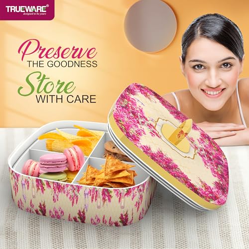 Trueware Present CANNES Luxury Serving and Gift Set. Total Capacity 1400 ML Each Compartment 350 ML. Multi-Sectioned Storage Unieque and Attactive Design Easy to Clean Easy to Carry. Air tight lid Keep the food fresh for longer. BPA Free 100% Food Grade. FDA Certified.