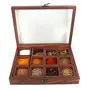 This sheesham wooden box with 12 blends and a spoon is great to Indian spices. - It is handcrafted in classic brown color and comes with a unique sheesham spoon. - This multipurpose utility box can also be used to and serve refreshers dry fruits and keep your knock knacks like jewelry small items at one place. - This will definitely keep your spices organised in your kitchen. Art type : Handcrafted. Note : 1) Comes with a spoon. 2) Comes with 12 containers. 3) As this product is handcrafted there might be a slight colour or design variation which is natural and hence makes the product unique. Package content : 1 Box 1 Spoon. Capacity : 45ml.