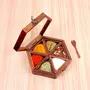 HomeKitchenContainersSpice BoxesWooden Spice Box Masala Dani, Spice Box for Kitchen Container Jars with Spoon in Sheesham Wood, Decorative Masala Dabba Organizer 6 Containers (Hexagon) 90 ML