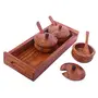 This sheesham wood container set with plate is ideal for serving sauf cardamom and so on after lunch/supper to your visitor. The spoon and the bowl has been created in an interesting shape. It accompanies a container cover to cover the bowl. This item is food safe.Intended for keeping just dry items.The item isn't air-tight.This item isn't microwave or dishwasher safe.As this item is high quality there may be a slight tone or plan variety which is common and consequently makes the item interesting. High quality. Accompanies 5 containers with tops 5 spoons and 1 plate. Craetion India Craft . Container Set With Tray and Spoon In Sheesham Wood This sheesham wood container set with plate is ideal for serving sauf cardamom and so on after lunch/supper to your visitor. The spoon and the bowl has been created in a special shape for It accompanies a container cover to cover the bowl.