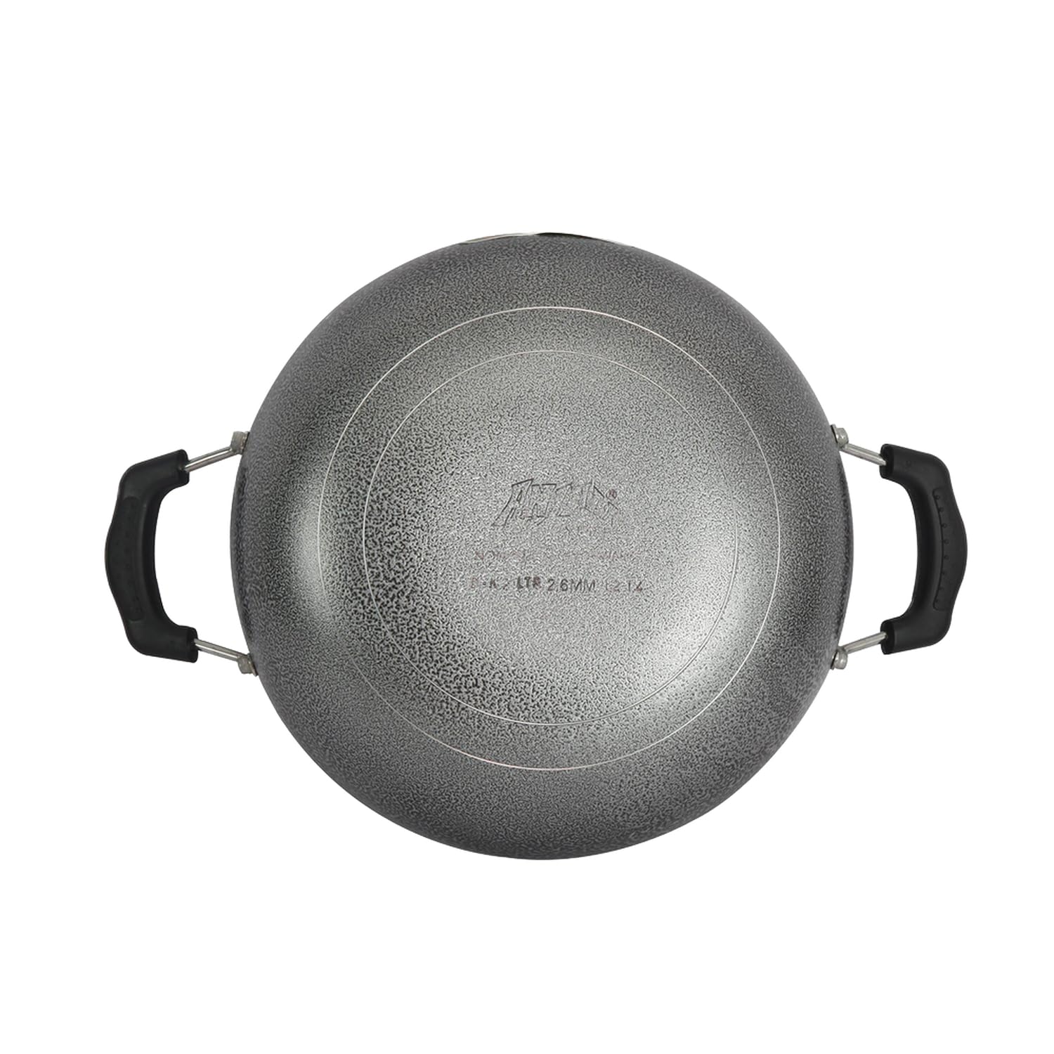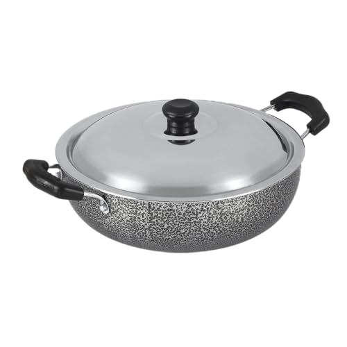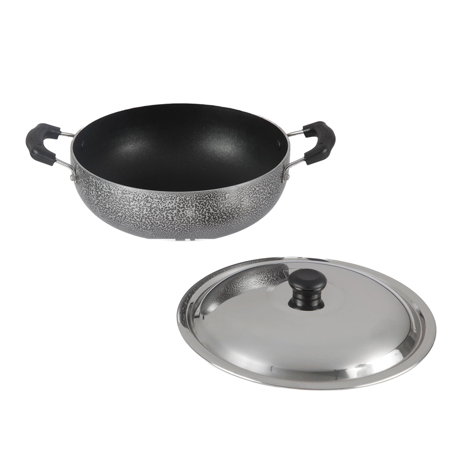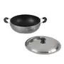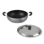 Anjali Diamond Dura Non-Stick Kadai with Stainless Steel Lid, 3.25 litres, Black