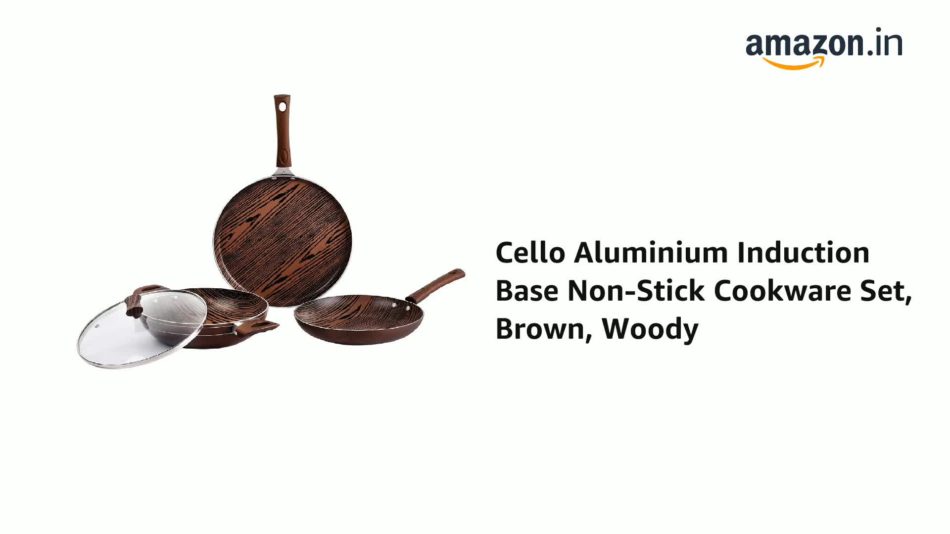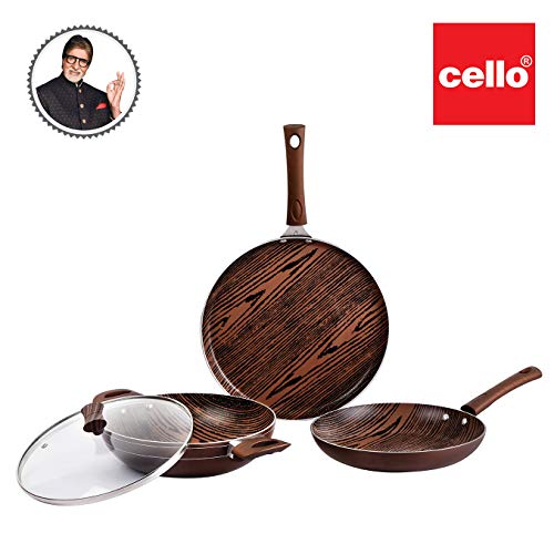 Cello Aluminium Induction Base Non-Stick Cookware Set, Brown, Woody