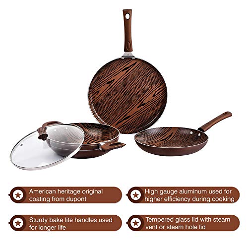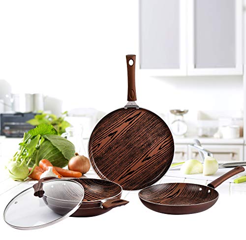 Cello Aluminum Induction Base Non-Stick Cookware Set Brown Woody