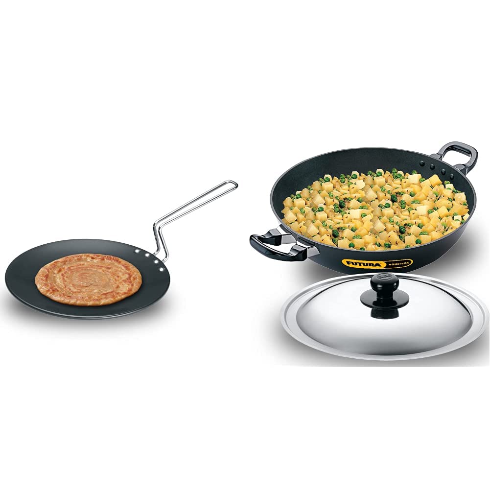 Hawkins Futura Hard Anodised Tawa 26Cm Black & Hawkins Futura Non-Stick Round Bottom Deep-Fry Kadai with Steel Lid 30Cm
