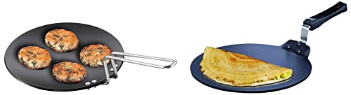 Hawkins Futura Hard Anodised Tawa 24cm BlackTava are widely used to cook roti (flatbreads) phulka (puffed unleavened bread) and paratha (layered unleavened bread) - all staple foods in India. Tava can also well cook cutlets eggs pancakes French toasts griddle cakes and the like. Futura Hard Anodised Tava are particularly preferred for their heavy gauge and well-balanced pans that make cooking easy and the results delicious. The handles whether in stainless steel or plastic are stay-cool and comfortable.Hawkins - Q28 Futura Non-stick Dosa Tava 28 cm BlackThe Dosa Tava is designed with just the right curvature and thickness to give you the best cooking results when making dosa (rice and gram pancakes). The flange which firmly attaches the handle with strong stainless steel rivets is uniquely designed to not interfere with the cooking surface and to hence maximise the cooking area allowing you to make a very large dosa or several uttapam or cutlets at one time. The 4.88 mm extra thick heavy gauge metal ensures fast and even heat conduction and retains heat well. The Dosa Tava Instruction Manual has 11 tested recipes for the Dosa Tava including four varieties of dosa uttapam cutlets and rolls. The Dosa Tava is suitable for domestic gas and radiant electric cooktops. Diameter (cm): 28 Thickness (mm): 4.88 Carton dimensions (WxDxH): 443 x 286 x 72 mm Product weight in carton: 1.06 kg
