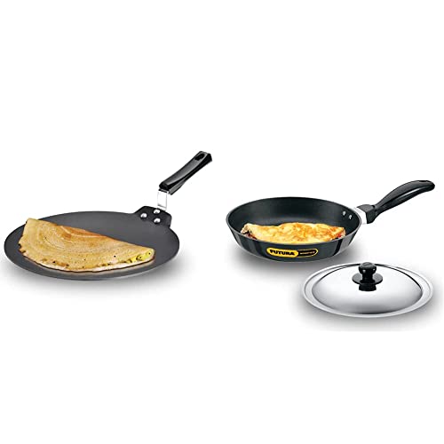 Hawkins - Q28 Futura Non-stick Dosa Tava 28 cm BlackThe Dosa Tava is designed with just the right curvature and thickness to give you the best cooking results when making dosa (rice and gram pancakes). The flange which firmly attaches the handle with strong stainless steel rivets is uniquely designed to not interfere with the cooking surface and to hence maximise the cooking area allowing you to make a very large dosa or several uttapam or cutlets at one time. The 4.88 mm extra thick heavy gauge metal ensures fast and even heat conduction and retains heat well. The Dosa Tava Instruction Manual has 11 tested recipes for the Dosa Tava including four varieties of dosa uttapam cutlets and rolls. The Dosa Tava is suitable for domestic gas and radiant electric cooktops. Diameter (cm): 28 Thickness (mm): 4.88 Carton dimensions (WxDxH): 443 x 286 x 72 mm Product weight in carton: 1.06 kgHawkins Futura Non-Stick Frying Pan with Steel Lid 22cmApart from the frying pan with rounded sides and extra height this range also has the Futura Nonstick All-Purpose Pans which are deeper and can be used for sautéing stir-frying and deep-frying in addition to their use as a frying pan. The All-Purpose Pan comes with a single long handle and in a larger capacity with two short handles. Both All-Purpose Pans have snug-fit dome-shaped lids which are suitable for simmering and the All-Purpose Pan with two short handles makes an elegant serving bowl as well.