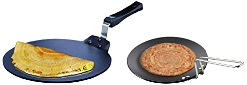 Hawkins - L-59 Futura Hard Anodised Tawa 28cm BlackFutura Hard Anodised Tava are particularly preferred for their heavy gauge and well-balanced pans that make cooking easy and the results delicious. The handles whether in stainless steel or plastic are stay-cool and comfortable. Tava are widely used to cook roti (flatbreads) phulka (puffed unleavened bread) and paratha (layered unleavened bread) all staple foods in India. Tava can also well cook cutlets eggs pancakes French toasts griddle cakes and the like.Hawkins - Q28 Futura Non-stick Dosa Tava 28 cm BlackThe Dosa Tava is designed with just the right curvature and thickness to give you the best cooking results when making dosa (rice and gram pancakes). The flange which firmly attaches the handle with strong stainless steel rivets is uniquely designed to not interfere with the cooking surface and to hence maximise the cooking area allowing you to make a very large dosa or several uttapam or cutlets at one time. The 4.88 mm extra thick heavy gauge metal ensures fast and even heat conduction and retains heat well. The Dosa Tava Instruction Manual has 11 tested recipes for the Dosa Tava including four varieties of dosa uttapam cutlets and rolls. The Dosa Tava is suitable for domestic gas and radiant electric cooktops. Diameter (cm): 28 Thickness (mm): 4.88 Carton dimensions (WxDxH): 443 x 286 x 72 mm Product weight in carton: 1.06 kg
