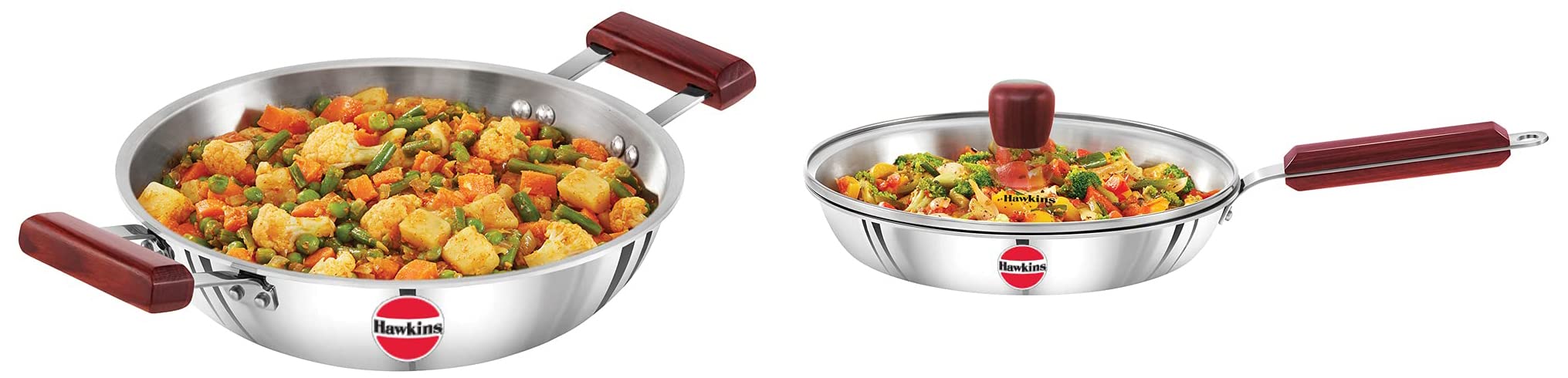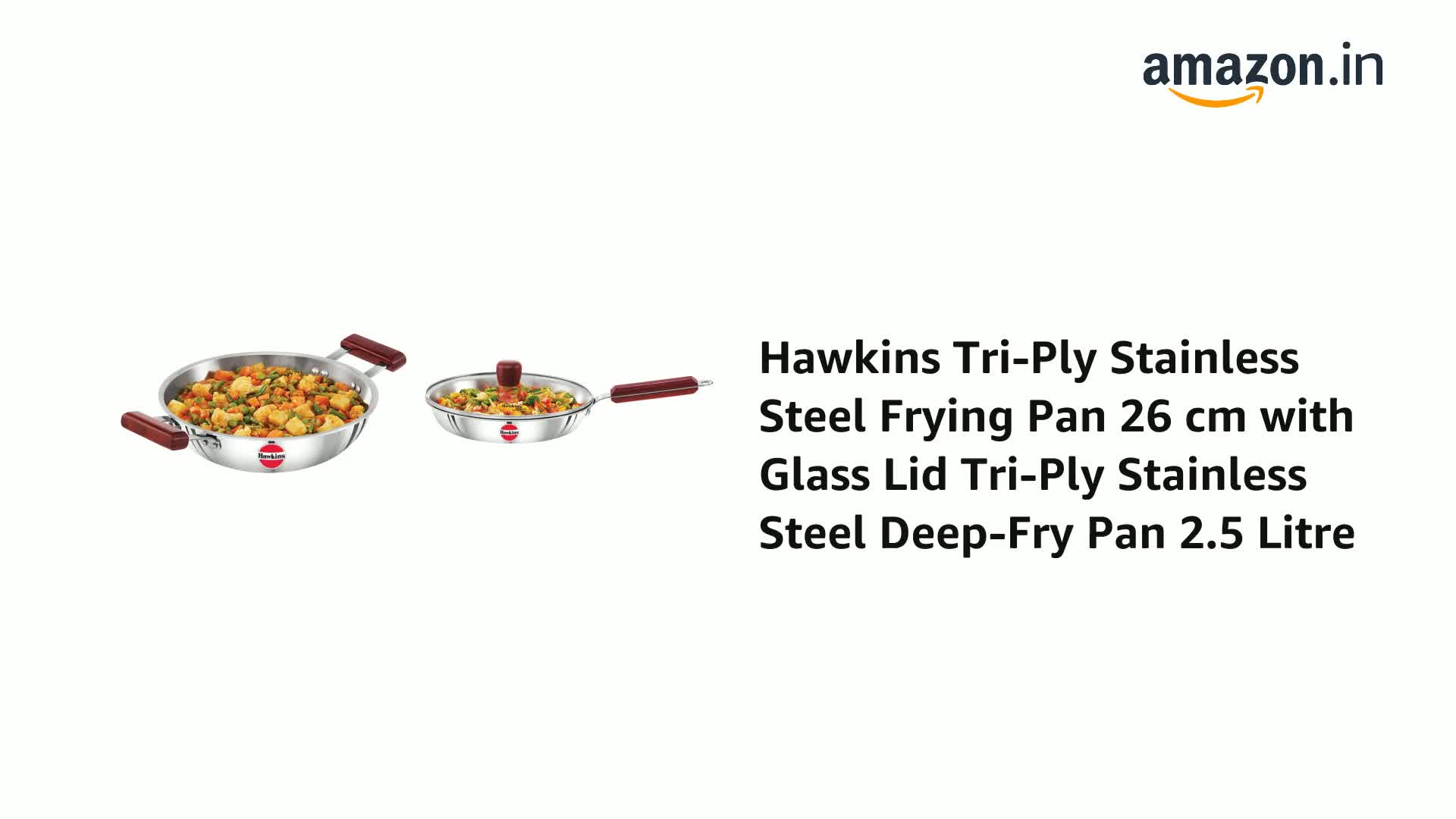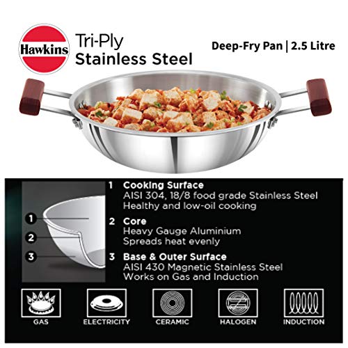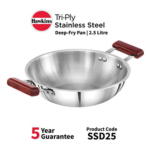 Hawkins Tri-Ply Stainless Steel Frying Pan 26 cm with Glass Lid & Hawkins Tri-Ply Stainless Steel Deep-Fry Pan 2.5 Litre