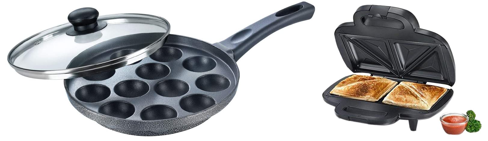 Sandwich maker and omega select plus non-stick paniyarakkal with lid. Power Indicators for easy of use.