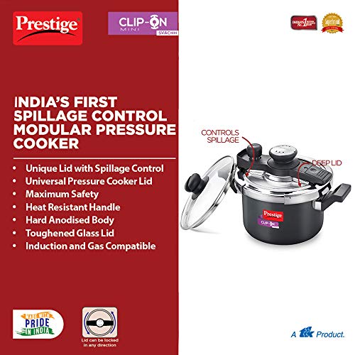 Prestige Svachh, 20240, 3 L, Hard Anodised Aluminium Outer Lid Pressure Cooker, With Deep Lid For Spillage Control, Black, 3 Liter