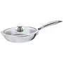 Alda Vitale Tri Ply Stainless Steel Fry Pan + Glass Lid - Food Grade SS 304 Cooking Surface - Suitab