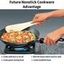 Futura Nonstick Deep-Fry Pans are distinguished by elegant comfortable rosewood handles fixed on sturdy stainless steel brackets which are permanently riveted to the pans. The long handles are carefully designed to provide greater comfort and safety particularly when handling heavy loads or hot oil. The cooking surface is made of PFOA-free with a unique patented process by which high quality nonstick coating (made in Germany) is locked firmly into the tough Hard Anodised surface underneath. Therefore the nonstick if used properly would last longer than the ordinary nonstick. The pans have curved sides suitable for deep-frying and stir-frying. They are offered with a Flat Bottom for greater stability on gas and for use on cooktops with a flat surface such as induction electric ceramic and halogen. The toughened thick Glass Lid is made of heat-resistant glass with a strong stainless steel rim and stay-cool knob. It stops splatter of hot foods.