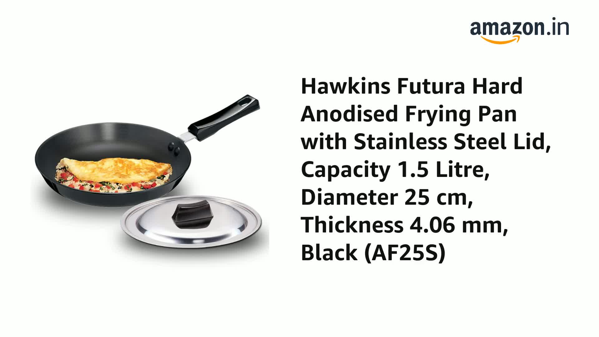 Hawkins Futura Hard Anodised Frying Pan with Stainless Steel Lid Capacity 1.5 Litre Diameter 25 cm Thickness 4.06 mm Black (AF25S)