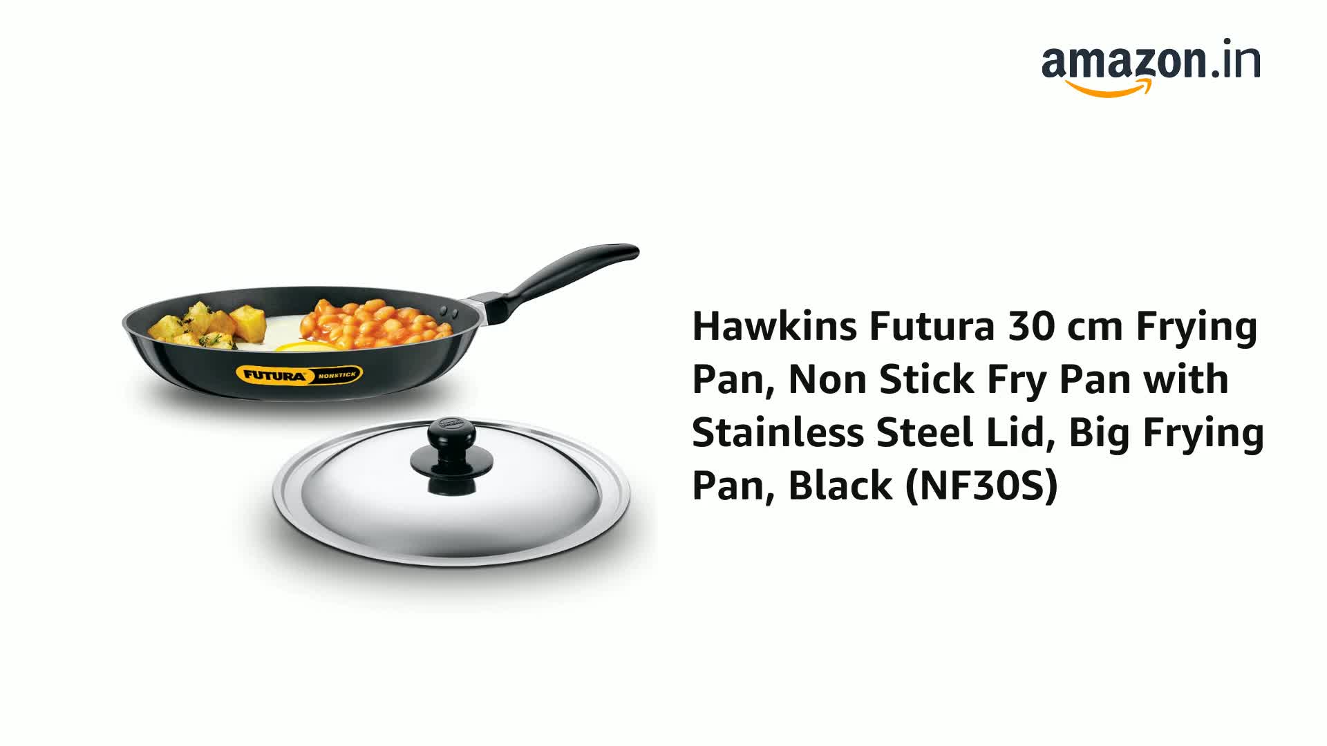 Hawkins Futura 28 cm Frying Pan, Non Stick Fry Pan with Stainless Steel Lid, Big Frying Pan, Black (NF28S)