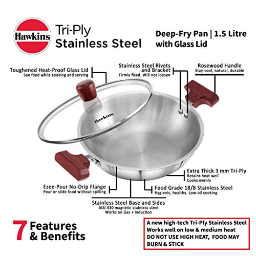 Hawkins Stainless Steel Tri-ply Deep-Fry Pans are ideal for sautéing and stir-frying using minimal quantities of oil. They can also be used for cooking gravies curries and sauces.