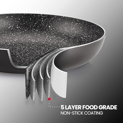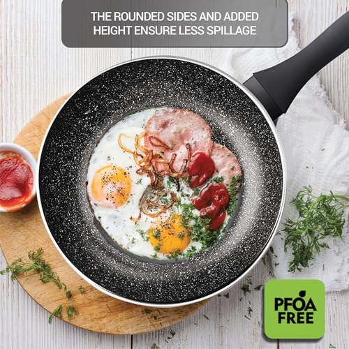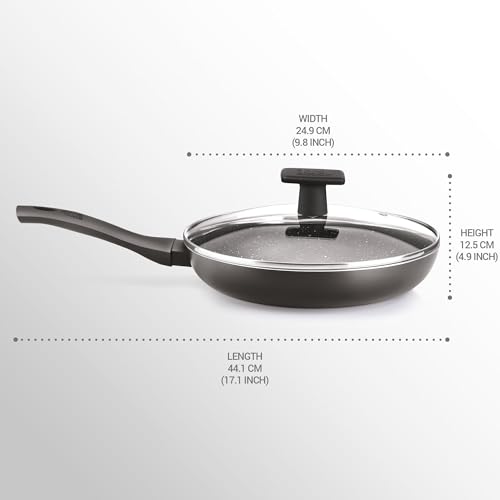 This induction compatible fry pan is strong & long-lasting due to the 3 mm thick body. Use the fry pan to cook delicious cutlets uttappa omelets stir-fry and more. The rounded sides and added height ensure less spillage of food outside the pan. The fry pan is perfect for busy cooks who seek durable performance in the kitchen every day.