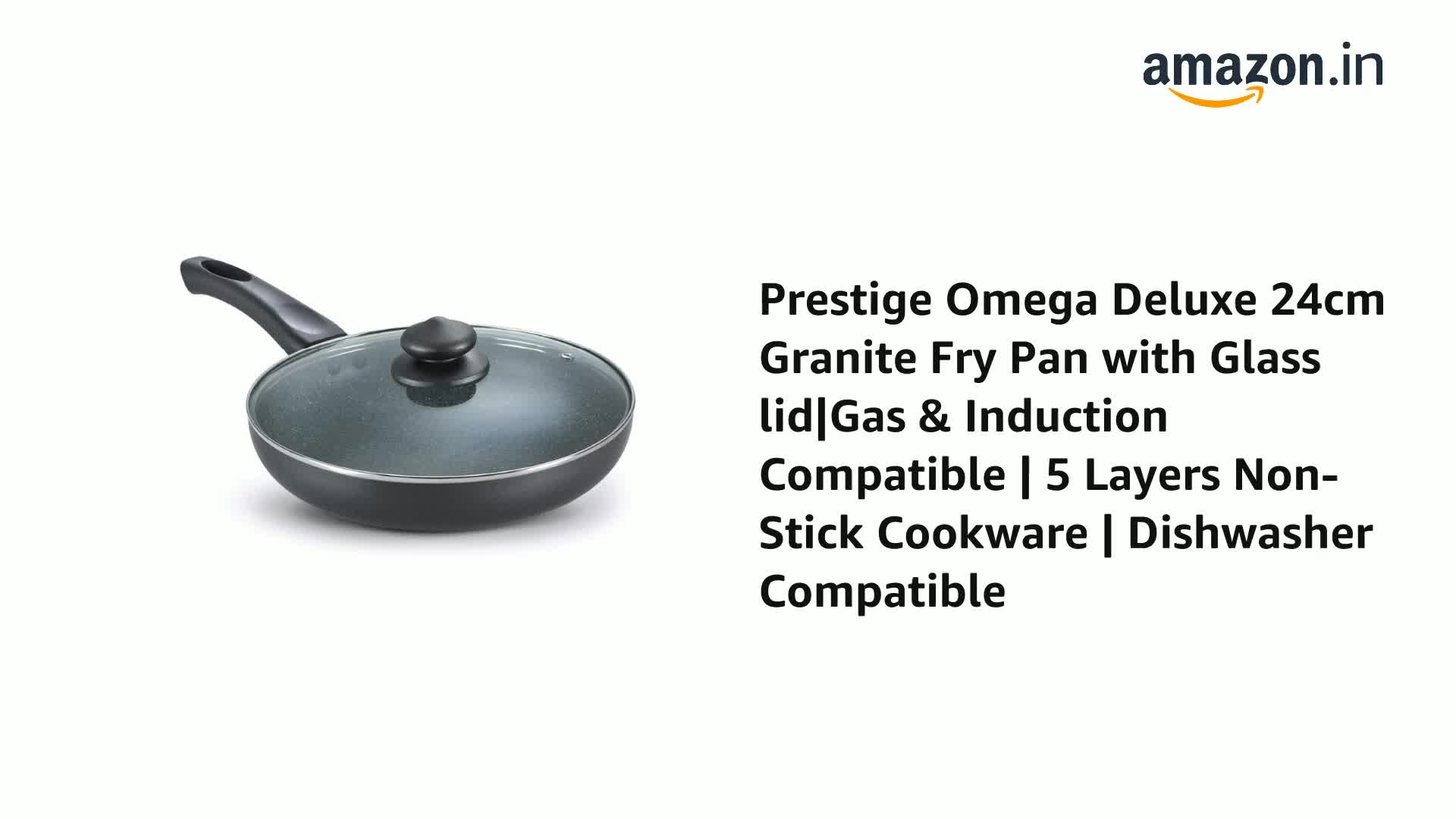 Prestige Omega Deluxe 24cm Granite Fry Pan with Glass lid|Gas & Induction Compatible | 5 Layers Non-Stick Cookware | Dishwasher Compatible