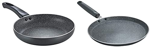 Prestige Aluminium Omega Deluxe Granite Dosa Tawa, Black, 250 Mm Omega Deluxe Granite Fry Pan, 240Mm, Black (36305)