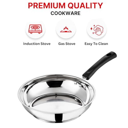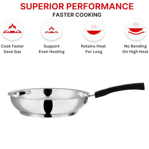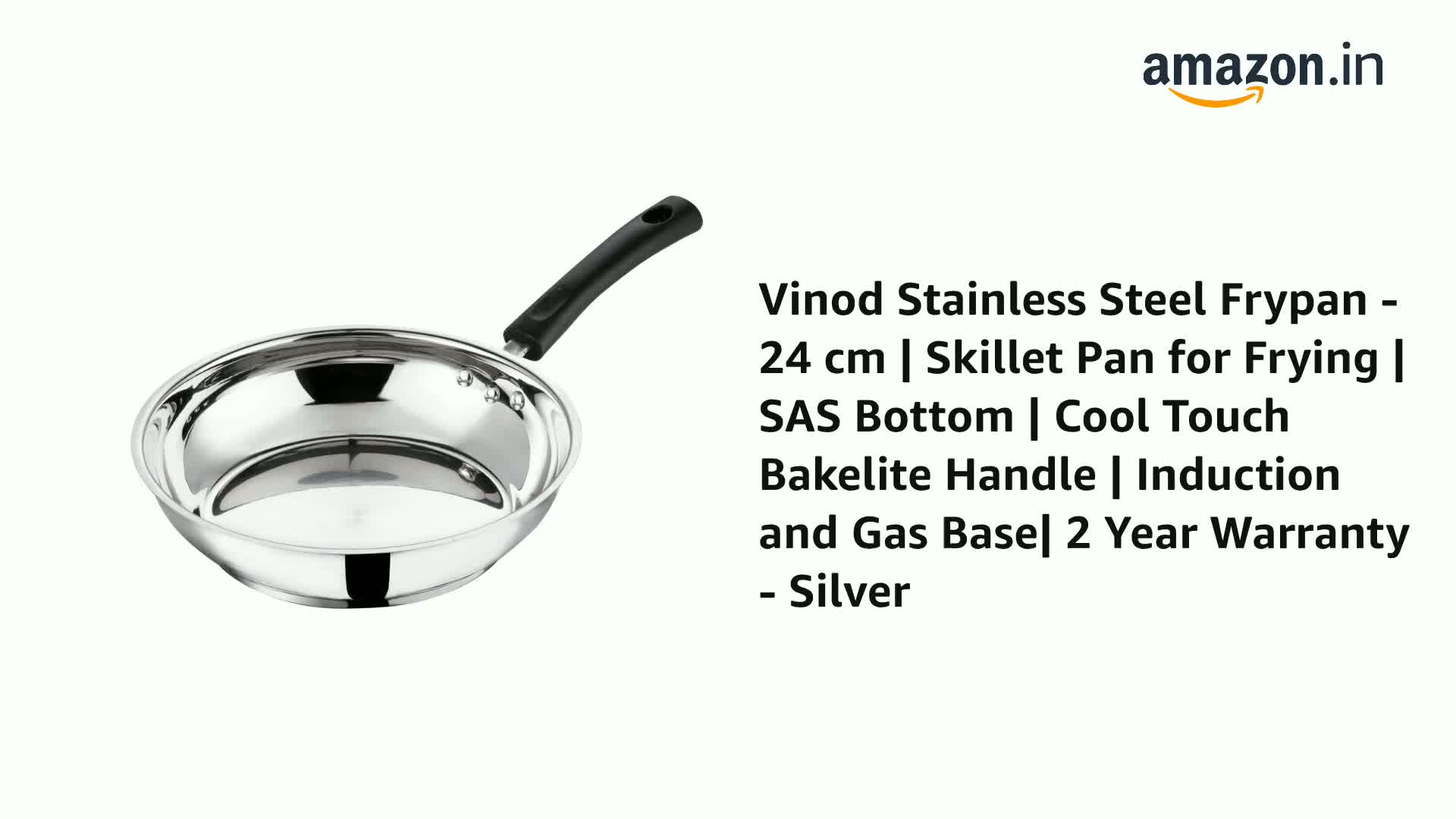 Vinod Stainless Steel Frypan - 24 cm | Skillet Pan for Frying | SAS Bottom | Cool Touch Bakelite Handle | Induction and Gas Base| 2 Year Warranty - Silver