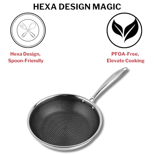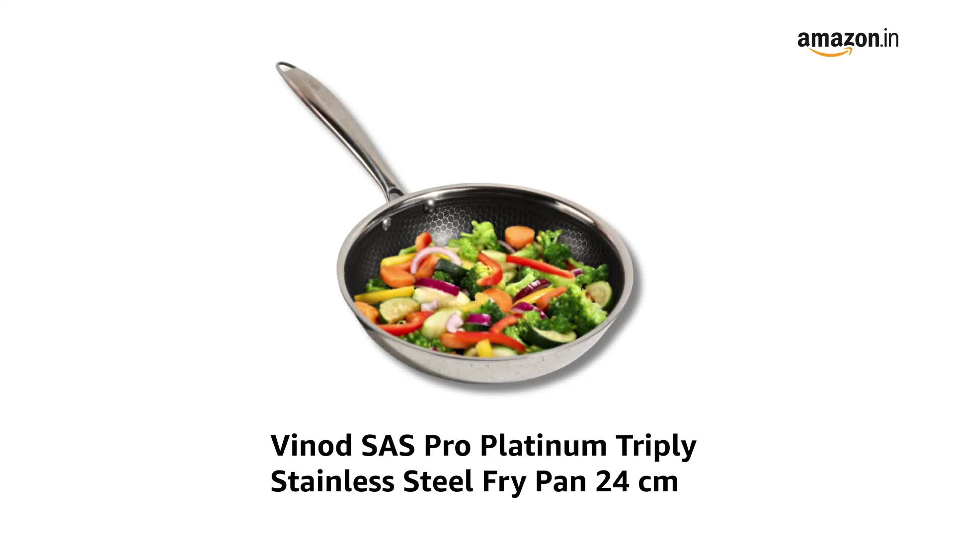 Vinod SAS Pro Platinum Triply Stainless Steel Fry Pan 24 cm |Honeycomb Pattern Design Inside, Scratch Resistant, Food Safe & PFOA Free - (Induction Friendly)