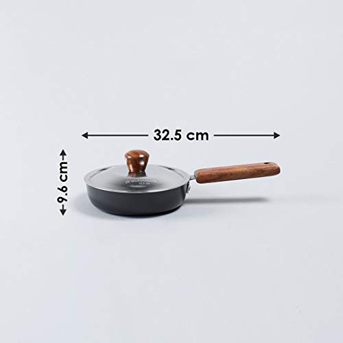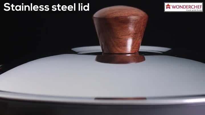 Size:StandardStunning grey color with wooden handles give a sophiscated look to your kitchen. The process of anodizing makes the aluminium harder and non-reactive. This ensures years of hassle-free use faster cooking and even heat distribution. 60 microns anodized coating makes it 2.4 times harder than steel. Stain and corrosion resistant easy to clean and maintain.Suitable for use on hot plate hobs gas stove. Reliable Wonderchef T&C Apply