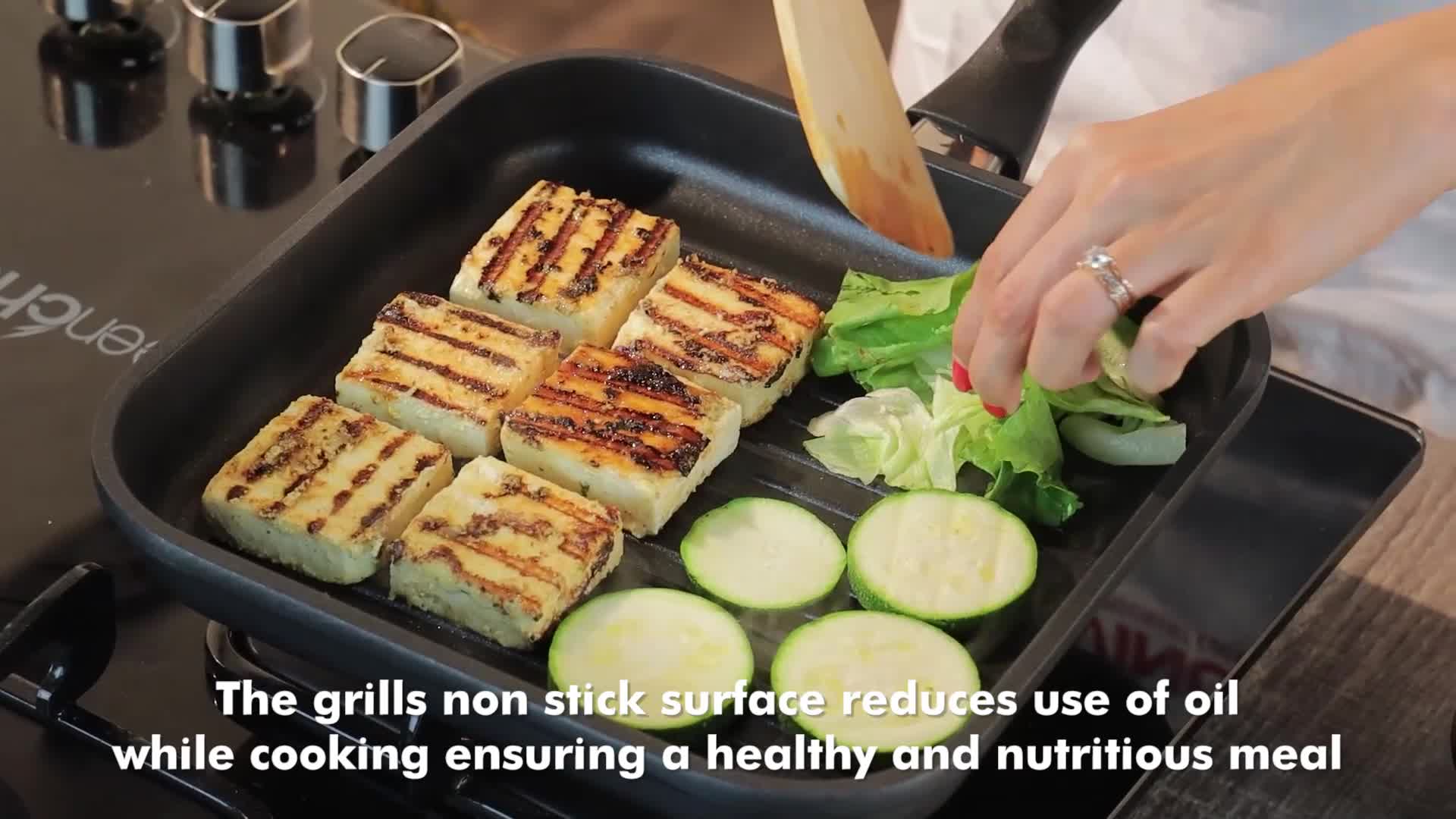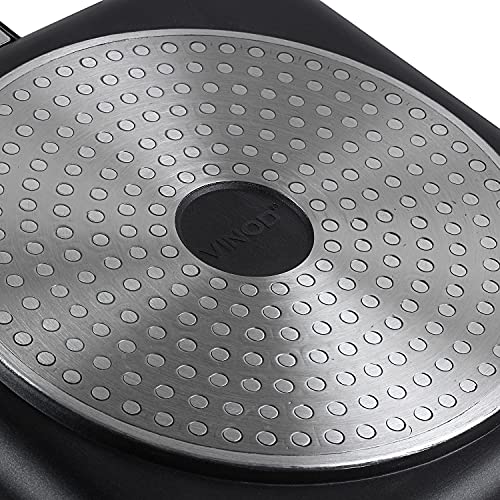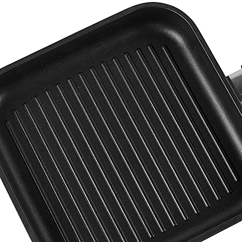 Vinod Zest Plus Die Cast Aluminium Square Griddle - 24 cm | 5 mm Thick | 3 Layer Coating | Silicone Handle | Swiss Quality | Induction Bottom | 1 Year Warranty - Black