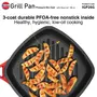 Die casting is a metal casting process whereby metal is heated to a very high temperature and poured under high pressure into a mould cavity. The molten metal takes the shape of the mould and the result is a complex intricately designed pot or pan which adds the metal where it is needed the most building strength and functionality. Once the molten metal hardens the mould is opened and the die cast pan is removed. It is then finished by a PFOA free long lasting nonstick coating on the inside and ceramic coating on the outside. The final result is a finely engineered piece of cookware with wonderful properties for cooking. Ideal for recipes like - Begun Bhaja Grilled Prawns Vegetable & Cheese Sandwiches Potato Wedges Grilled Chicken Burger Patties Grilled Fish Paneer Tikka Grilled Vegetables and many more. Use only wooden heat resistant nylon or silicone spatula (do not use metal). Suitable for use on gas electric ceramic and halogen. It comes with toughened Glass Lid made of 4 mm thick heat-resistant glass with a strong stainless steel rim and stay-cool knob.